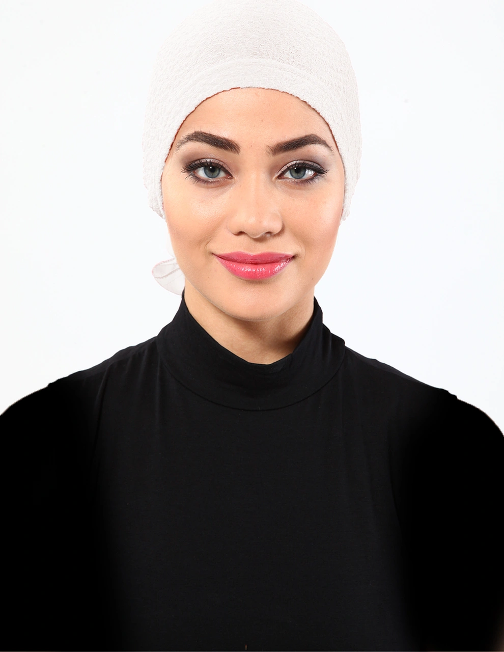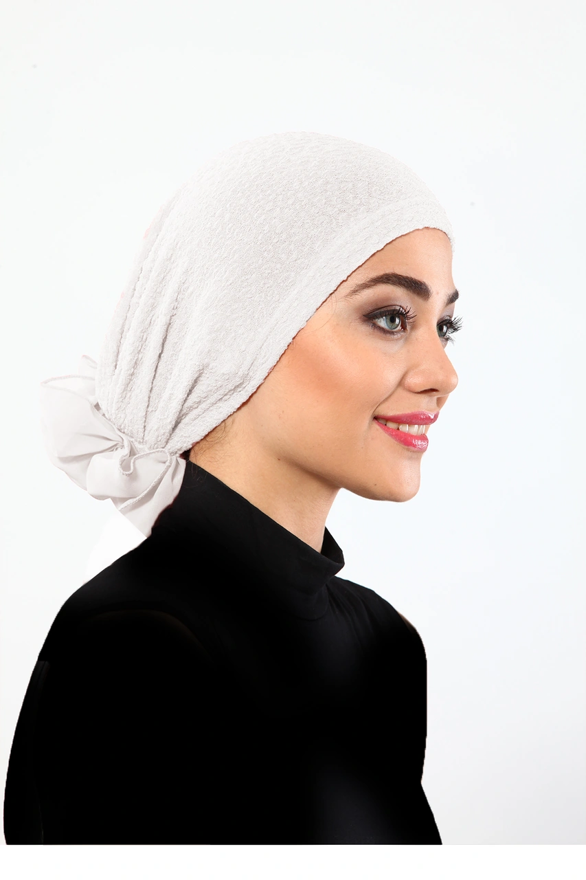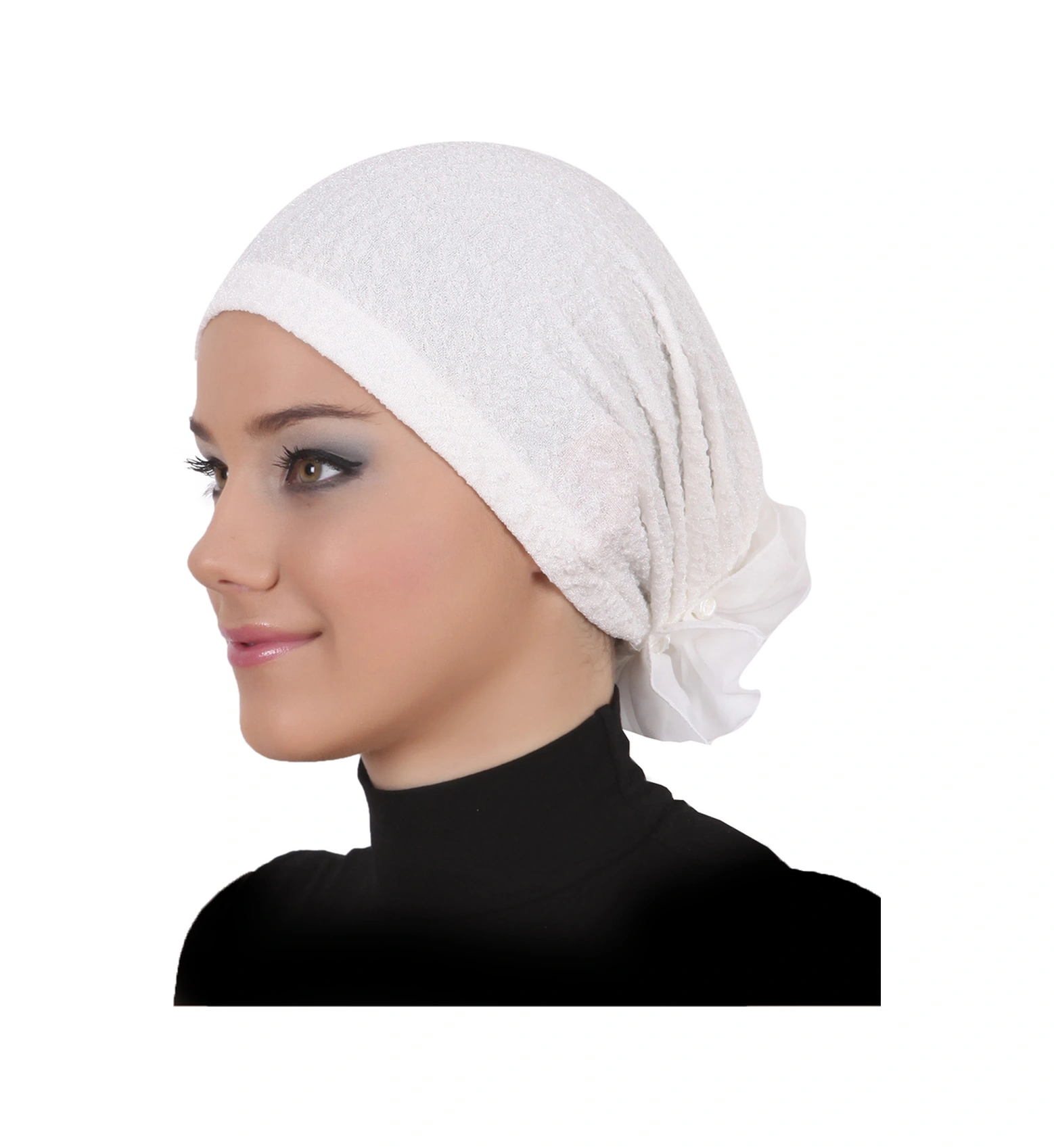 Brokar Tüllü Krem Hazır Türban Tesettür Bone Krem