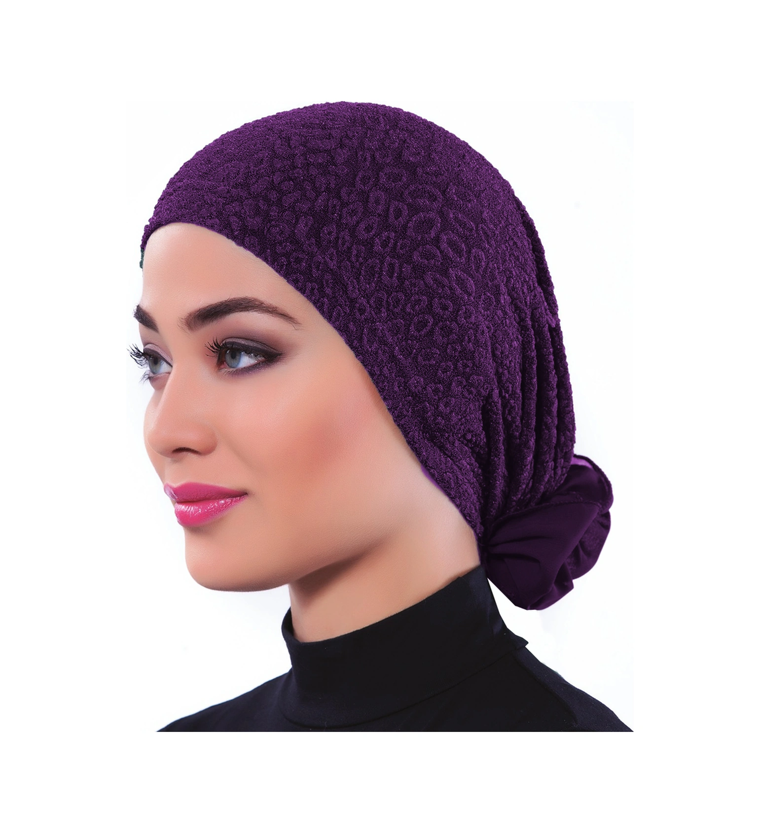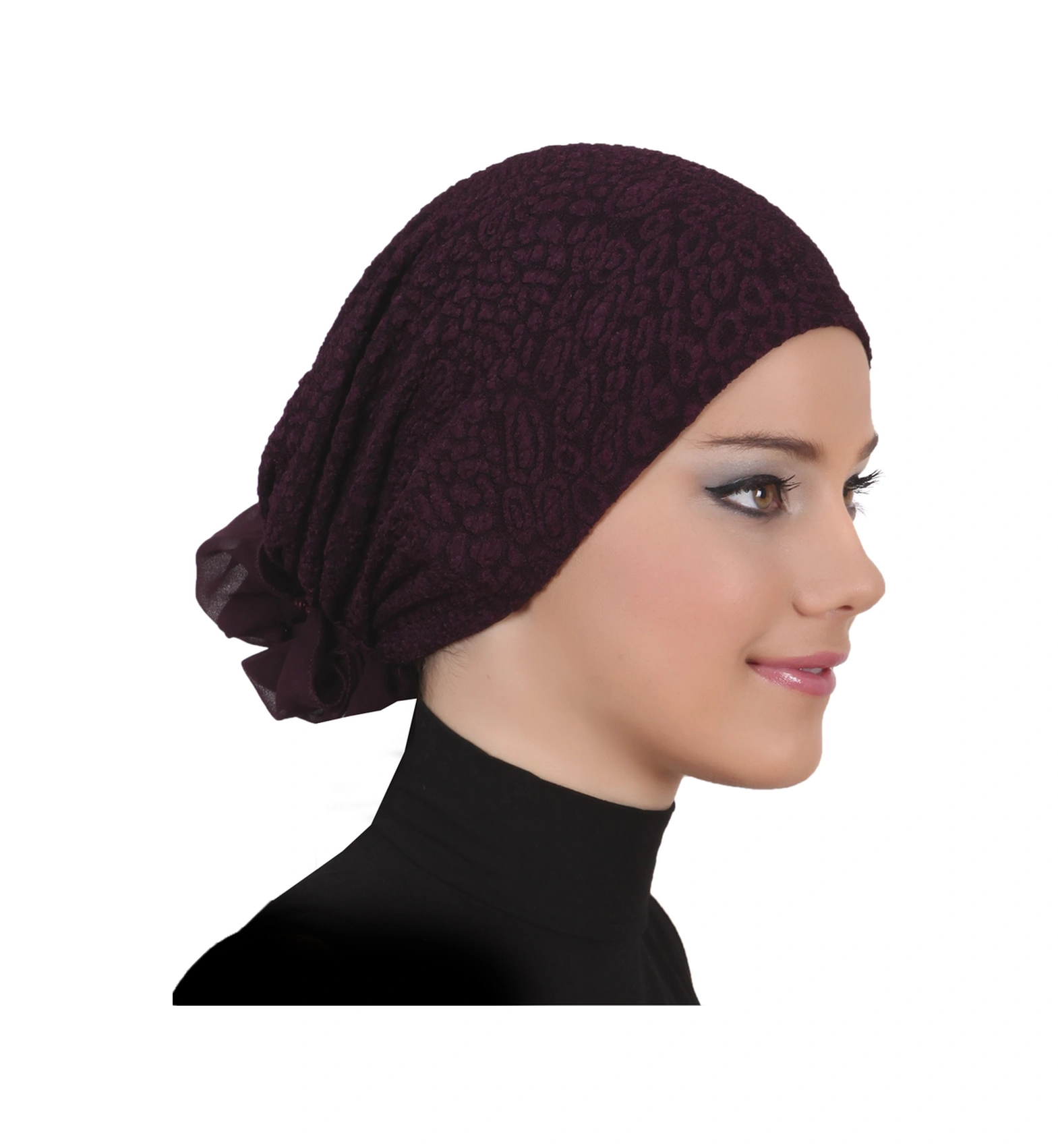 Brokar Tüllü Mürdüm Hazır Türban Tesettür Bone Mürdüm