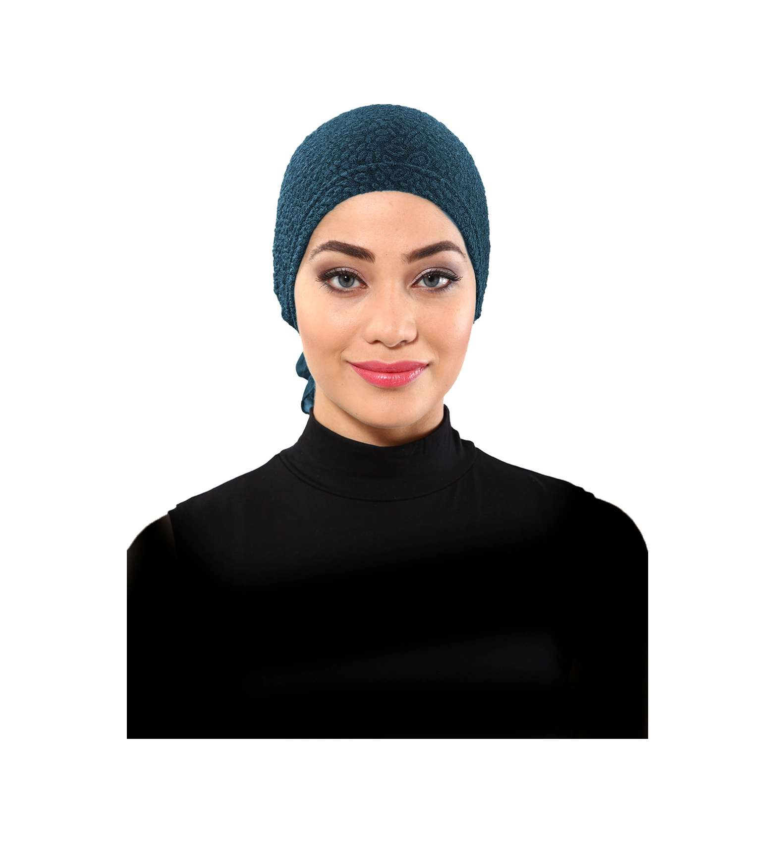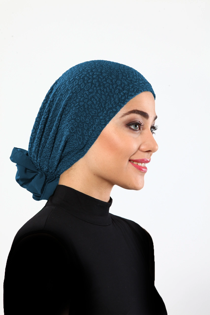 Brokar Tüllü Petrol Hazır Türban Tesettür Bone Petrol