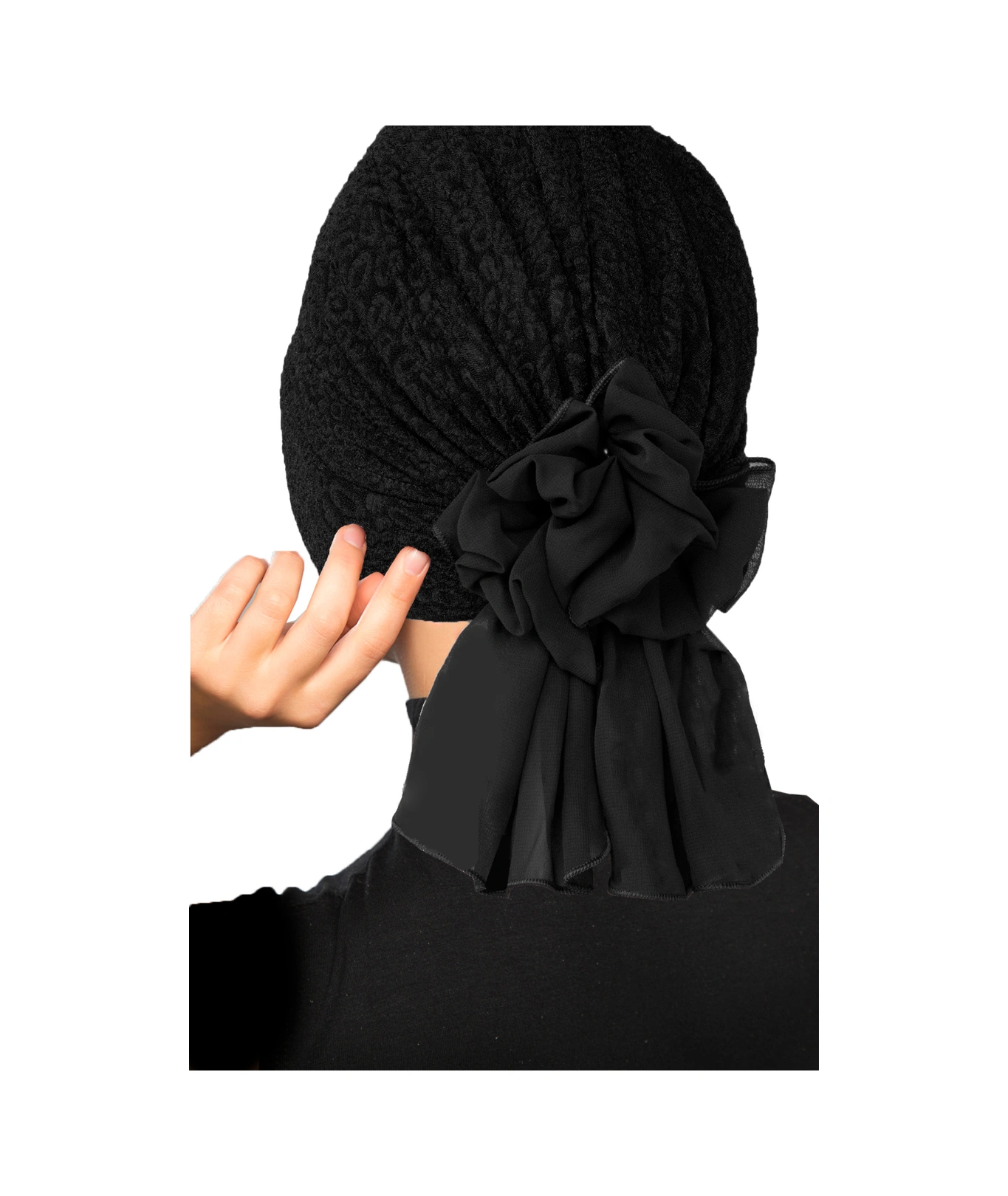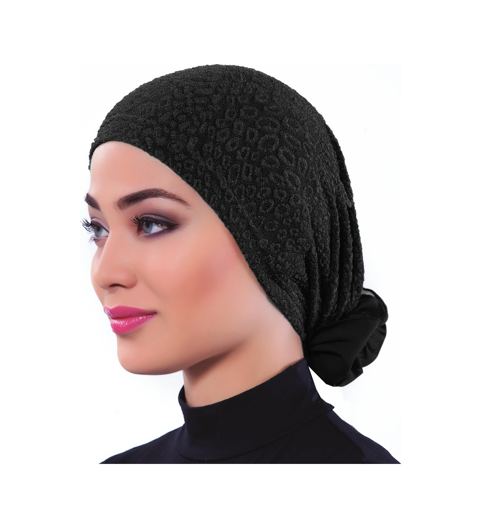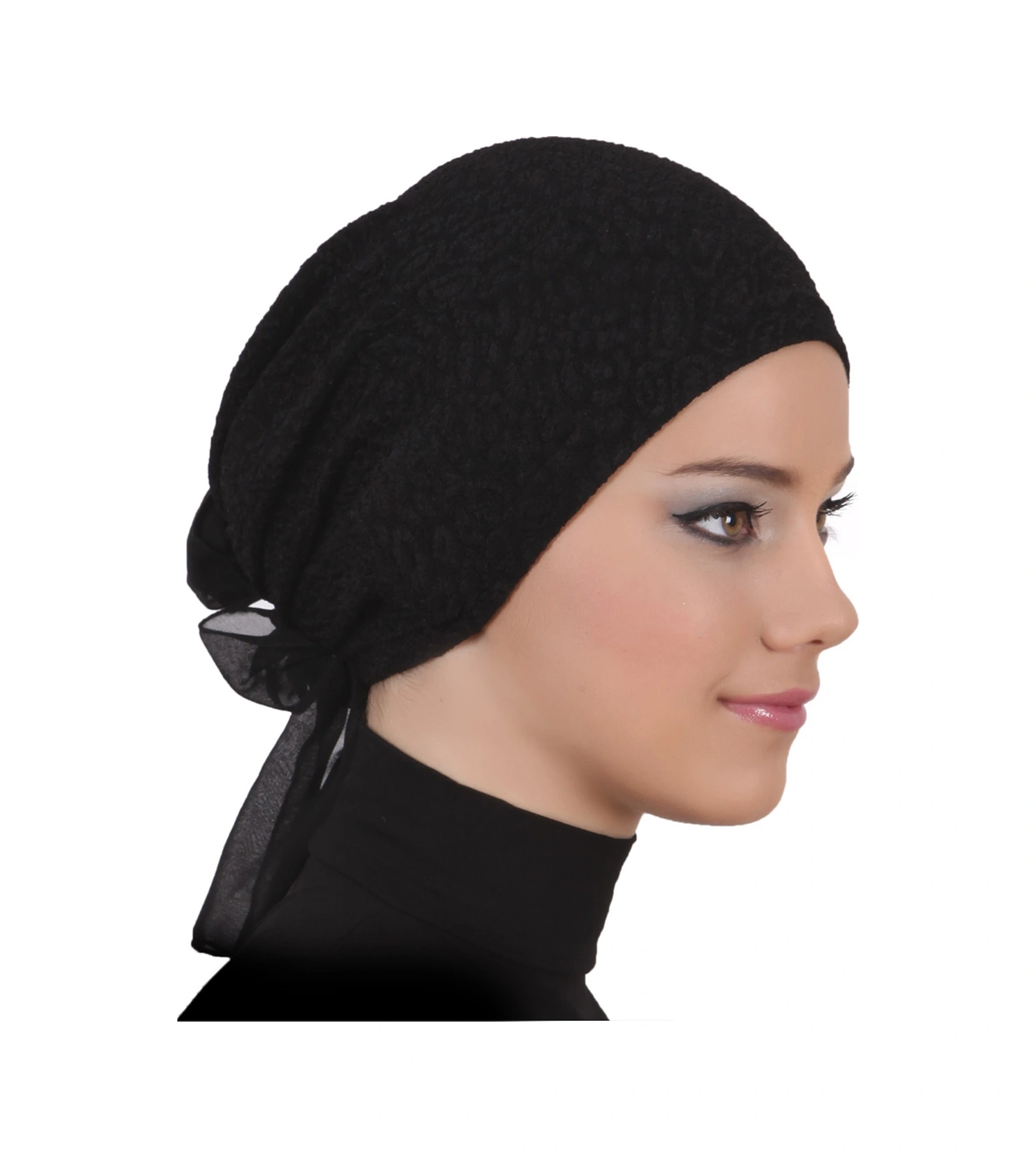 Brokar Tüllü Siyah Hazır Türban Tesettür Bone Siyah