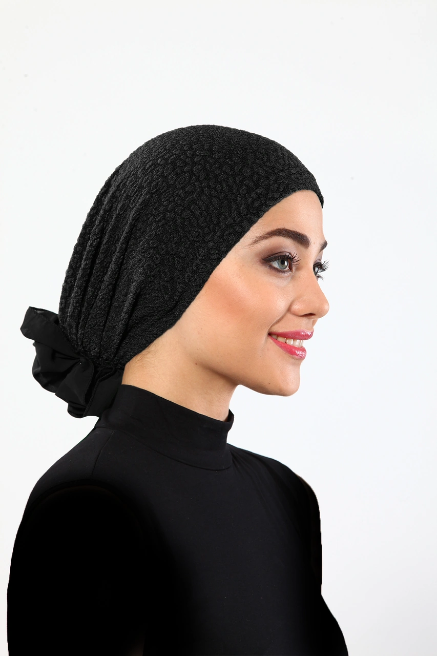 Lastikli Kaymaz Geçmeli Pratik Tesettür Bone Siyah