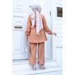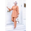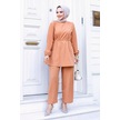 Tesettür İkili Takım Uzun Tunik Bol Paça Pantolon 4006-bej Bej