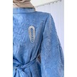 Broş Detay Elbise - Mavi