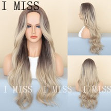 Brownblonde Degrade Büyük Dalgalı Doğal Sentetik Peruk
