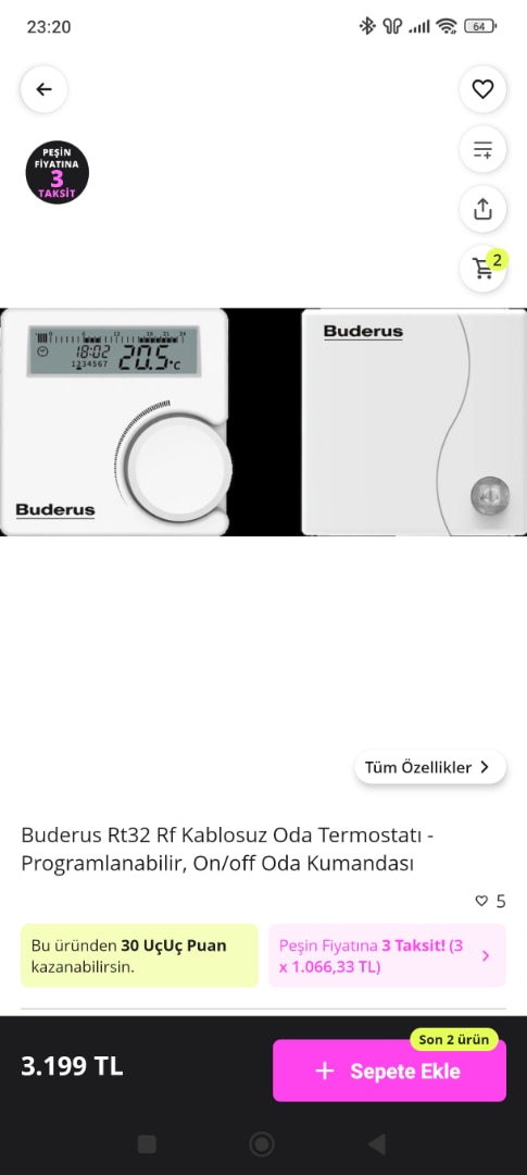 Buderus Rt32 Rf Kablosuz Oda Termostatı - Programlanabilir, On/off Oda Kumandası