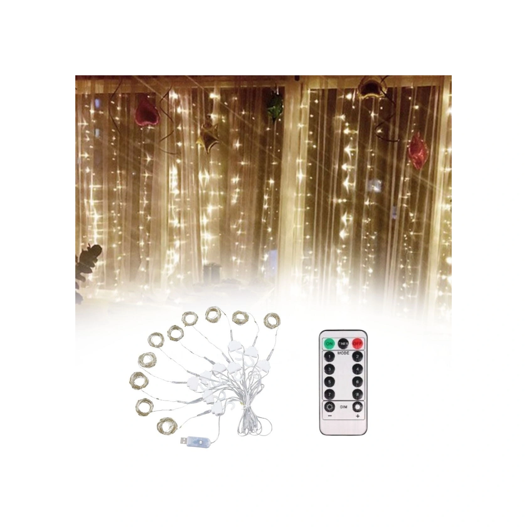 Buffer Uzaktan Kumandalı Led Perdeye Takılabilen Kancalı Işık Usb 3x3 Metre Peri Perde Led -m11 Sarı