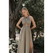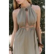 Bunina Bağcıklı Boncuk Detay Haki Uzun Elbise Haki