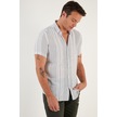 Buratti Çizgili Pamuklu Slim Fit Kısa Kollu Erkek Gömlek Cf23S116097 Beyaz-Yeşil