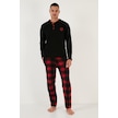 Buratti Ekose Regular Fit Bisiklet Yaka Kışlık Polar Erkek Pijama Takımı 609610013W4 Siyah-Kırmızı
