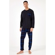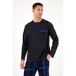 Buratti Ekoseli Cepli Beli Lastikli % 100 Pamuk Regular Fit Erkek Pijama Takımı 6572001 Lacivert-Saks