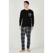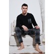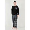 Buratti Ekoseli Cepli Beli Lastikli % 100 Pamuk Regular Fit Erkek Pijama Takımı 6572001 Siyah-Antrasit