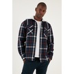 Buratti Ekoseli Çift Cepli Kapüşonlu Oduncu Erkek Gömlek Cf22W2650 Lacivert-Ekru