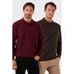 Buratti Pamuk Karışımlı Regular Fit 2'Li Paket Erkek Polo Yaka Kazak 456223S2 Kahve-Mürdüm