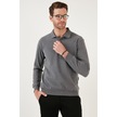 Buratti Pamuk Karışımlı Regular Fit Erkek Polo Yaka Kazak 456223 Koyu Gri
