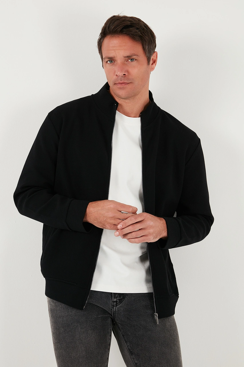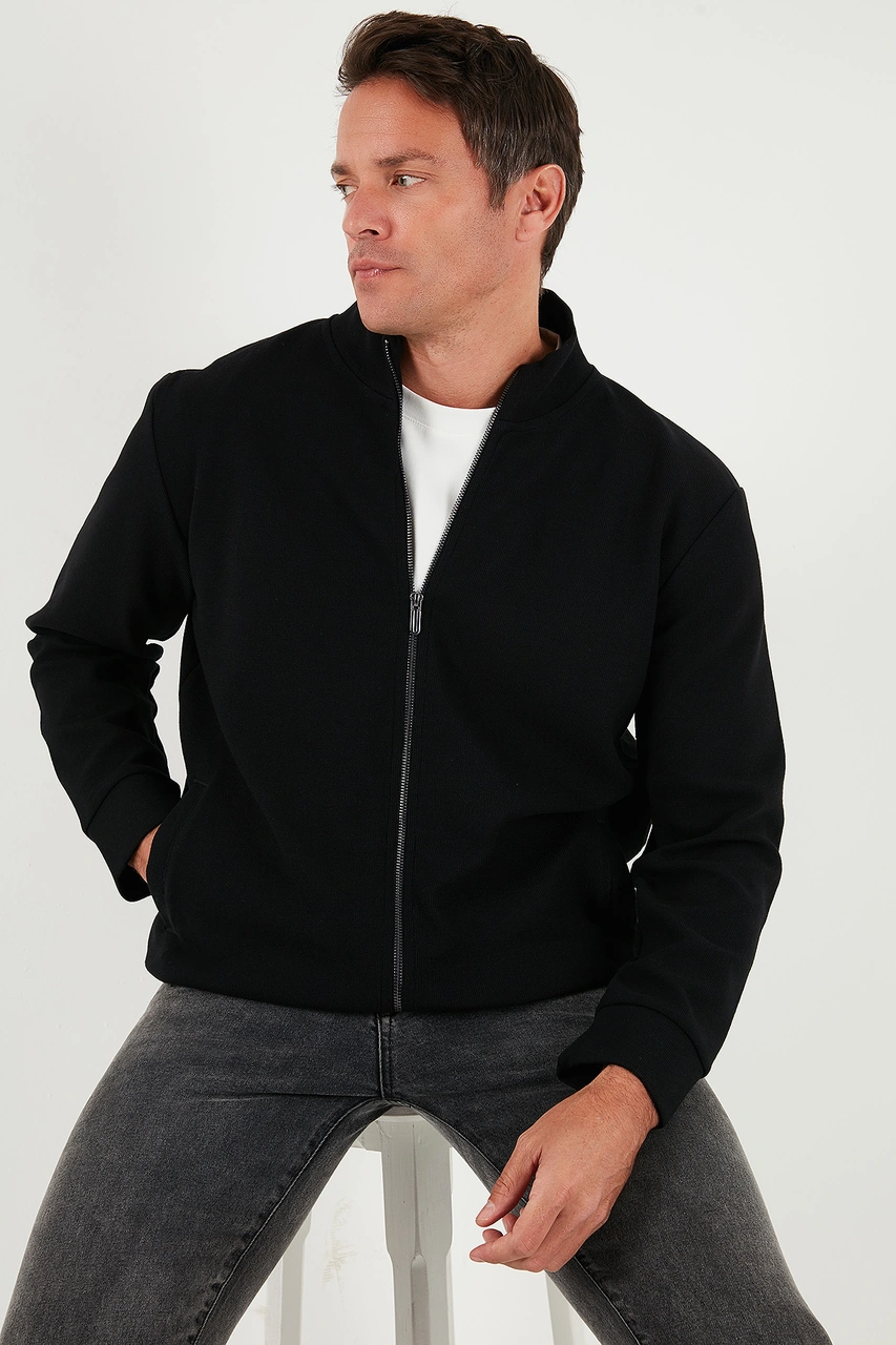 Buratti Pamuklu Regular Fit Dik Yaka Fermuarlı Erkek Hırka 5901077 Siyah