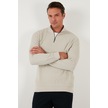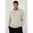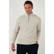 Buratti Pamuklu Regular Fit Yarım Fermuarlı Dik Yaka Erkek Sweat 5905716 Taş