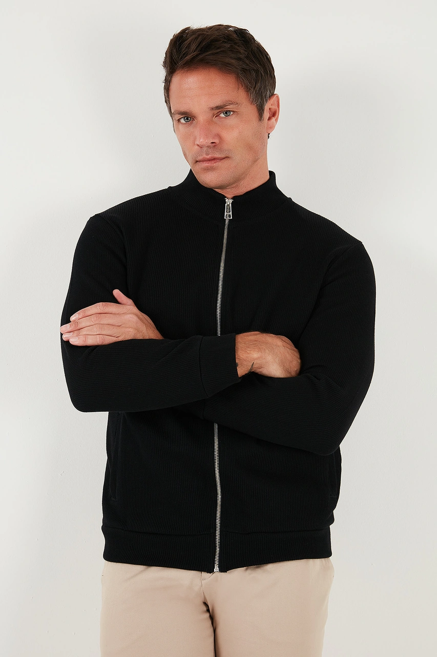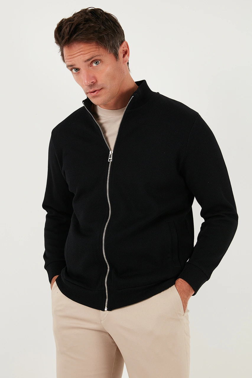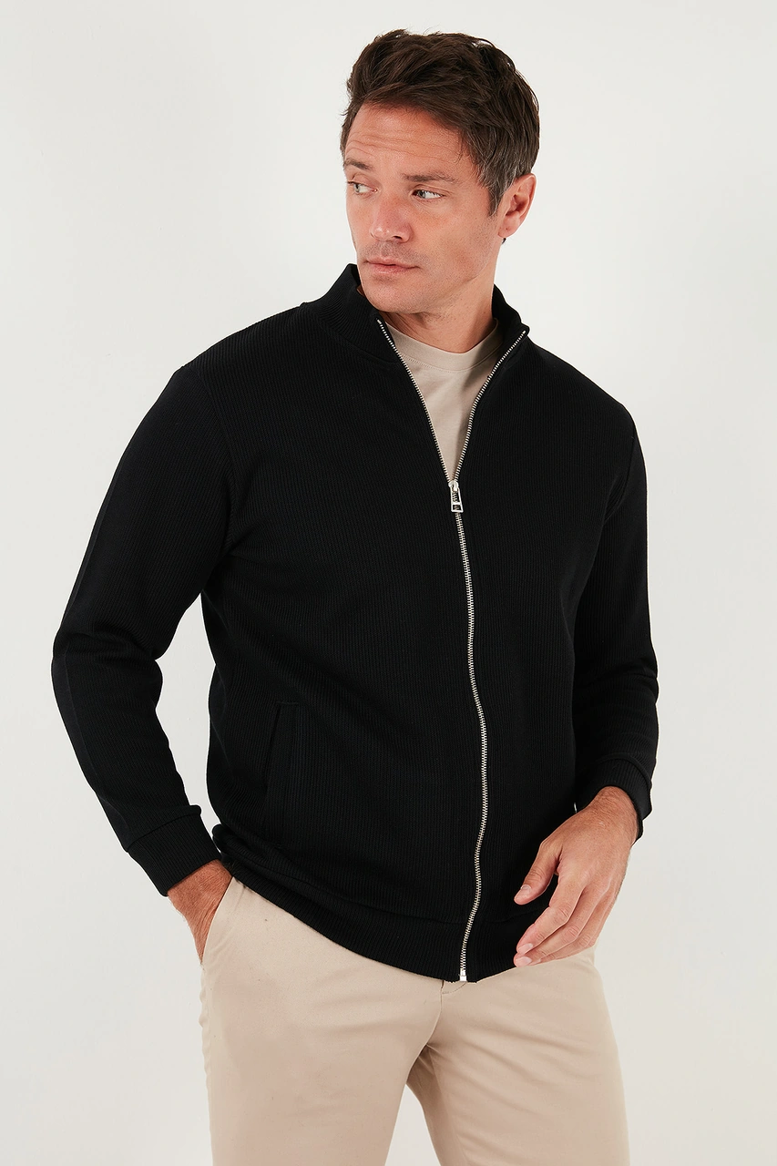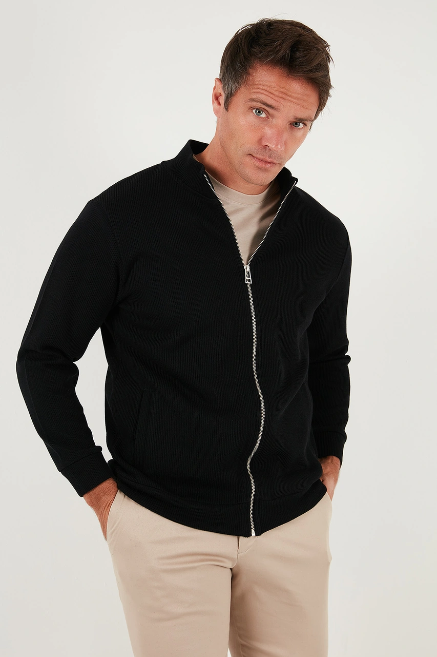Buratti Pamuklu Relaxed Fit Dik Yaka Fermuarlı Erkek Hırka 5901075 Siyah