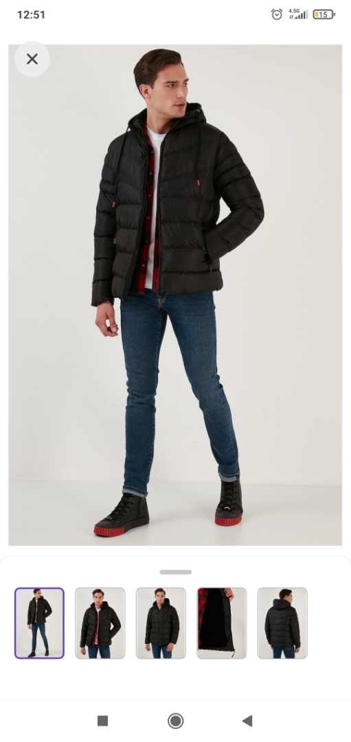 Buratti Peluş Astarlı Kapüşonlu Fermuarlı Slim Fit Şişme Erkek Mont 5762010 Siyah