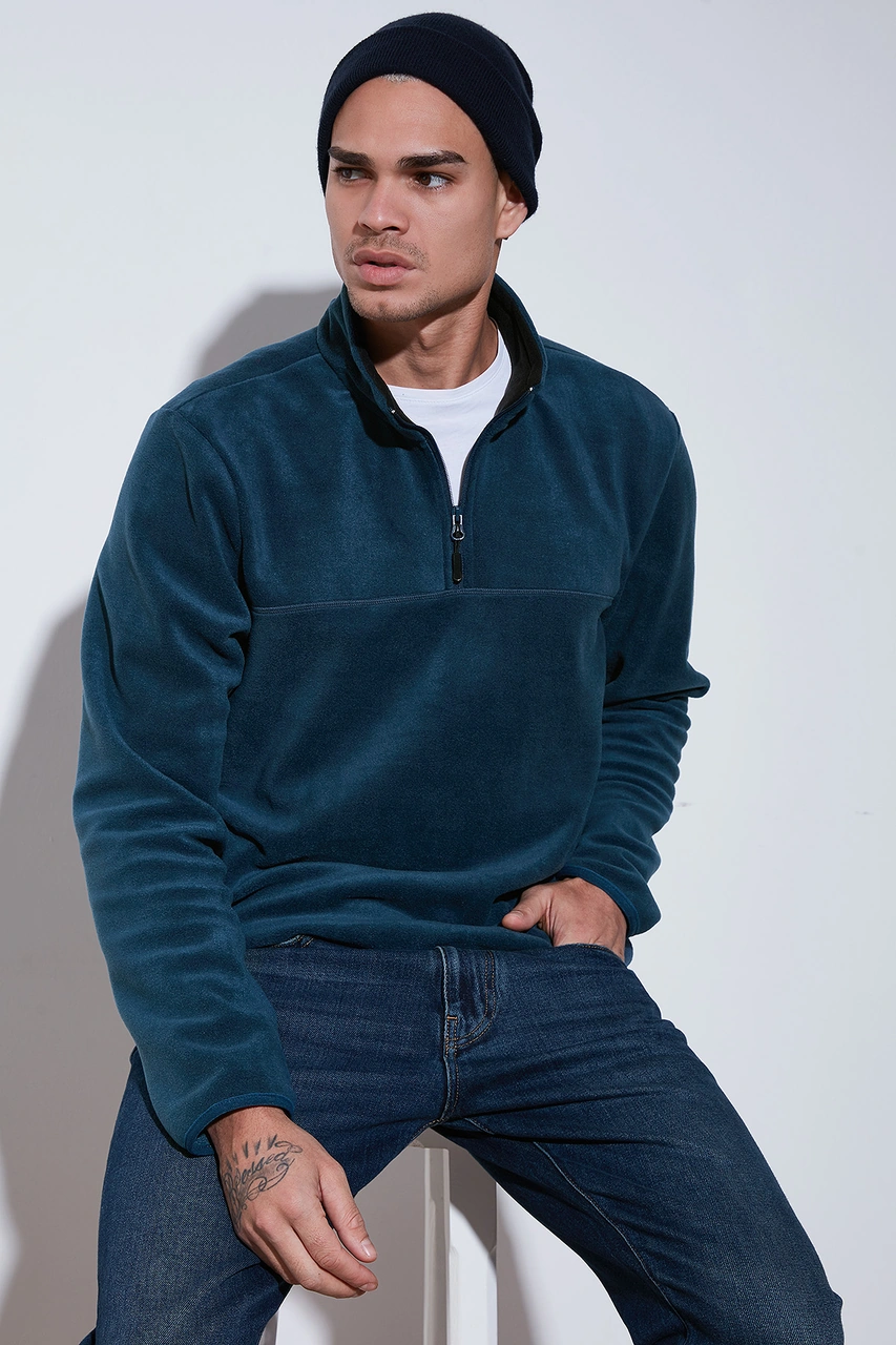 Buratti Regular Fit Anti-Pilling Tüylenme Yapmayan Dik Yaka Şardonlu 2'Li Paket Erkek Polar 5896700S2 Antrasit-Indigo