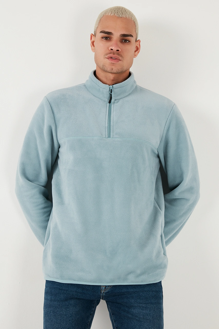 Buratti Regular Fit Anti-Pilling Tüylenme Yapmayan Dik Yaka Şardonlu 2'Li Paket Erkek Polar 5896700S2 Indigo-Mint