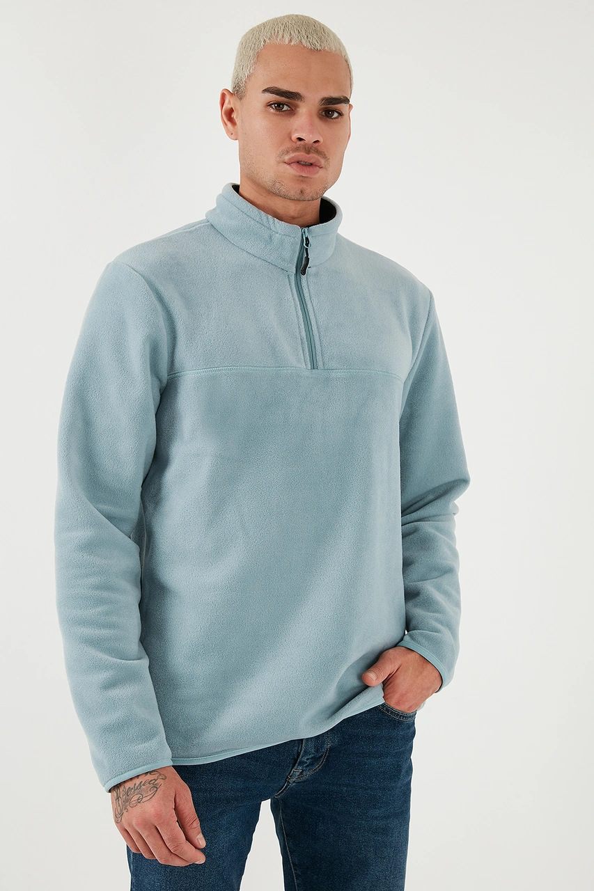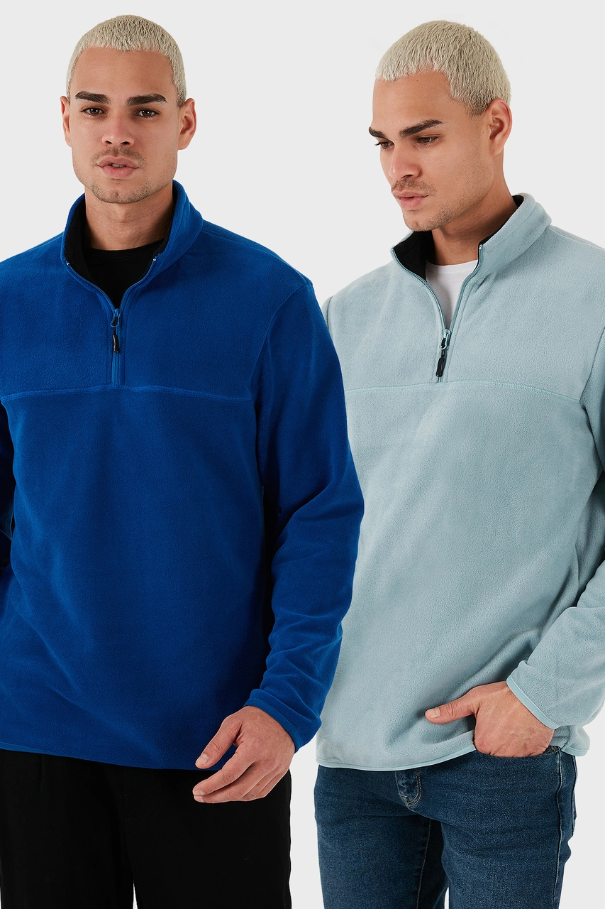 Buratti Regular Fit Anti-Pilling Tüylenme Yapmayan Dik Yaka Şardonlu 2'Li Paket Erkek Polar 5896700S2 Saks-Mint