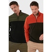 Buratti Regular Fit Anti-Pilling Tüylenme Yapmayan Dik Yaka Şardonlu 2'Li Paket Erkek Polar 5906016S2 Haki-Oranj
