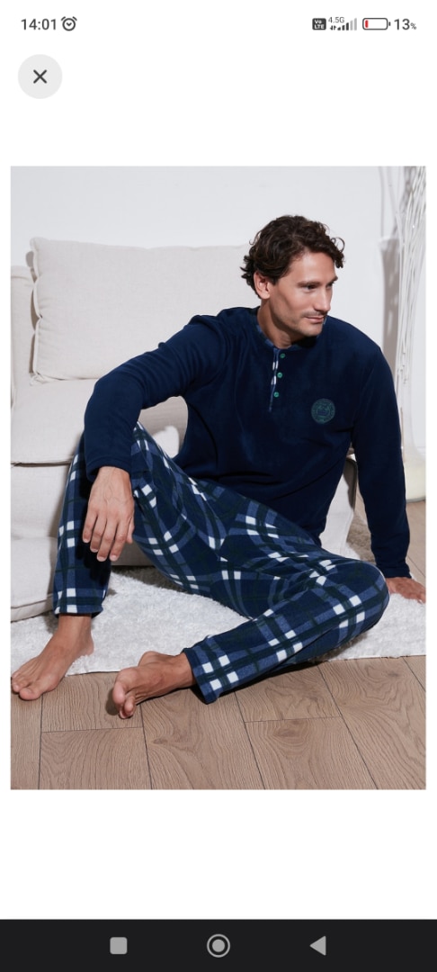 Buratti Regular Fit Bisiklet Yaka Kışlık Yumuşak Dokulu Polar Erkek Pijama Takımı 6096100 Lacivert