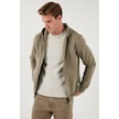 Buratti Regular Fit Kapüşonlu Fermuarlı Içi Tüylü Yumuşak Şardonlu Kışlık Erkek Sweat 5905340 Vizon Yeşili