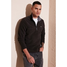 Buratti Slim Fit Anti-Pilling Tüylenme Yapmayan Bato Yaka Kışlık Şardonlu Erkek Polar 5906001 Siyah