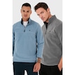 Buratti Slim Fit Anti-Pilling Tüylenme Yapmayan Bato Yaka Şardonlu 2'Li Paket Erkek Polar 5906001S2 Gri-Açık Mavi