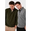 Buratti Slim Fit Anti-Pilling Tüylenme Yapmayan Bato Yaka Şardonlu 2'Li Paket Erkek Polar 5906001S2 Gri-Haki
