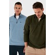 Buratti Slim Fit Anti-Pilling Tüylenme Yapmayan Bato Yaka Şardonlu 2'Li Paket Erkek Polar 5906001S2 Haki-Açık Mavi