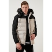 Buratti Slim Fit Çıkarılabilir Suni Tüylü Kapüşonlu Şişme Erkek Mont 5760076 Taş-Siyah