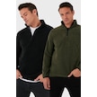 Buratti Slim Fit Yarım Fermuarlı Dik Yaka 2'Li Paket Erkek Polar 5906003S2 Haki-Siyah