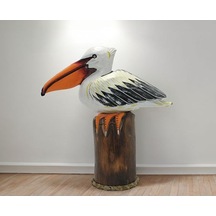 Büro Ev Ofis Dekoru İçin 45cm Ahşap Pelikan Objesi