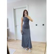 Bürümcük Kumaşlı İçi Astarlı Üzgülü Kolsuz Büzgülü Uzun Elbise - Füme Füme