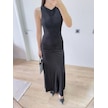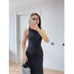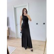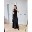 Bürümcük Kumaşlı İçi Astarlı Üzgülü Kolsuz Büzgülü Uzun Elbise - Siyah Siyah