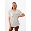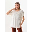 Büşra Triko Kadın Desenli Kısa Kol Penye Bluz 19152 Ekru