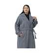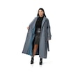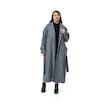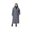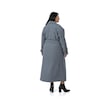 Büyük Beden Deri Biye Detaylı Fleto Cepli Kuşaklı Astarlı Kaşe Uzun Mavi Kaban Mavi