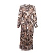 Büyük Beden Desenli Kuşaklı Jakar Elbise Gala-xi Kahverengi