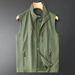 Büyük Beden Erkek İlkbahar Yaz İnce Yelek Kolsuz Ceket Dik Yaka Yelek Günlük Yelek Ordu Yeşili