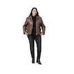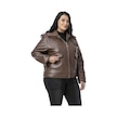 Büyük Beden İçi Kürklü Fermuarlı Yakası Toka Detaylı Kahverengi Deri Mont Kahverengi