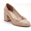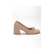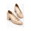 Büyük Beden Kadın Kalın Topuklu Ayakkabı Ten Rugan Fiyonklu Yuvarlak Burun-4301 Ten