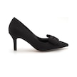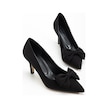 Büyük Beden Kadın Stiletto İnce Topuklu Ayakkabı Siyah Saten Fiyonklu-4295 Siyah