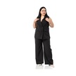 Büyük Beden Kaplama Düğmeli Yelek Pantolon Siyah İkili Takım Siyah