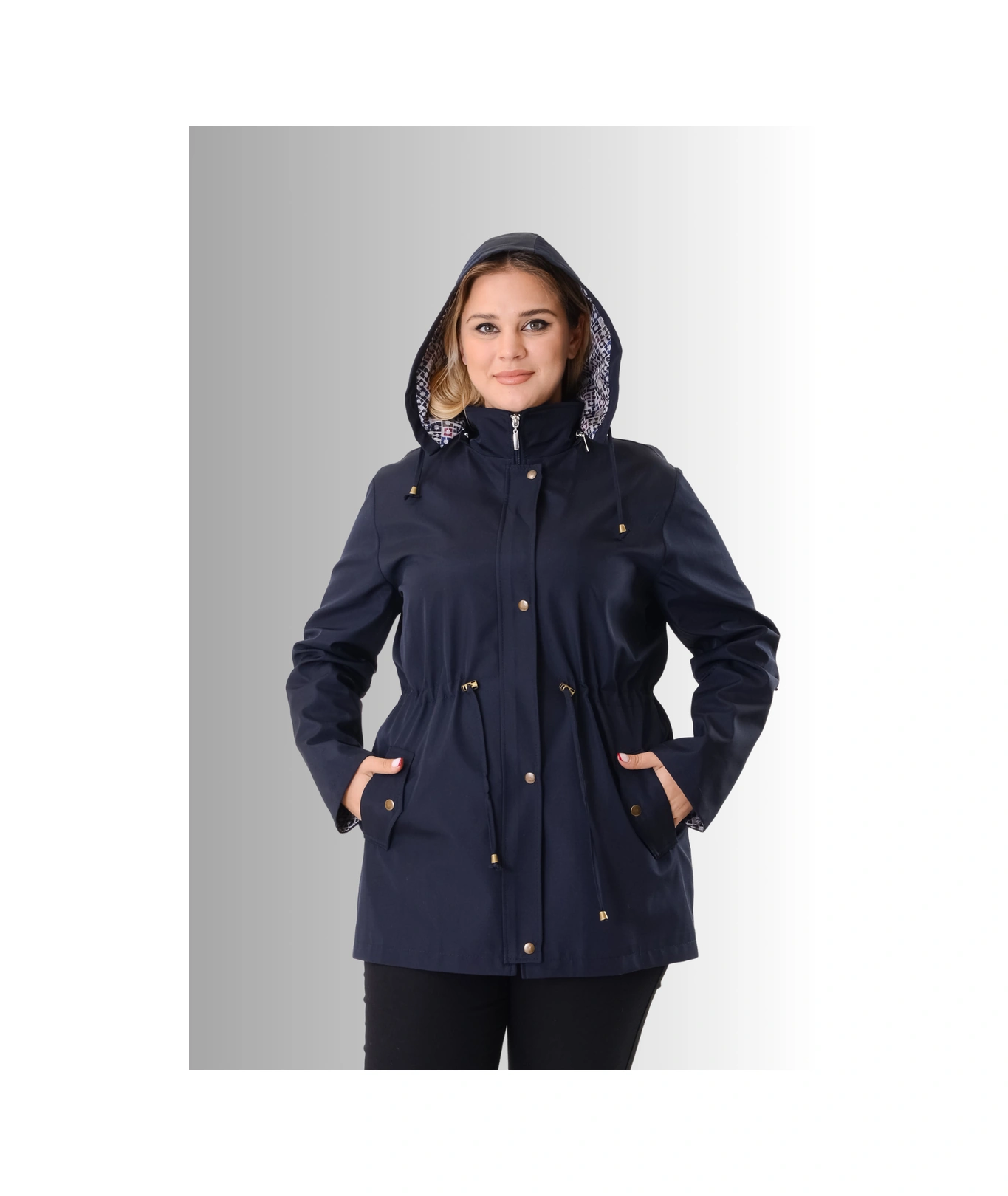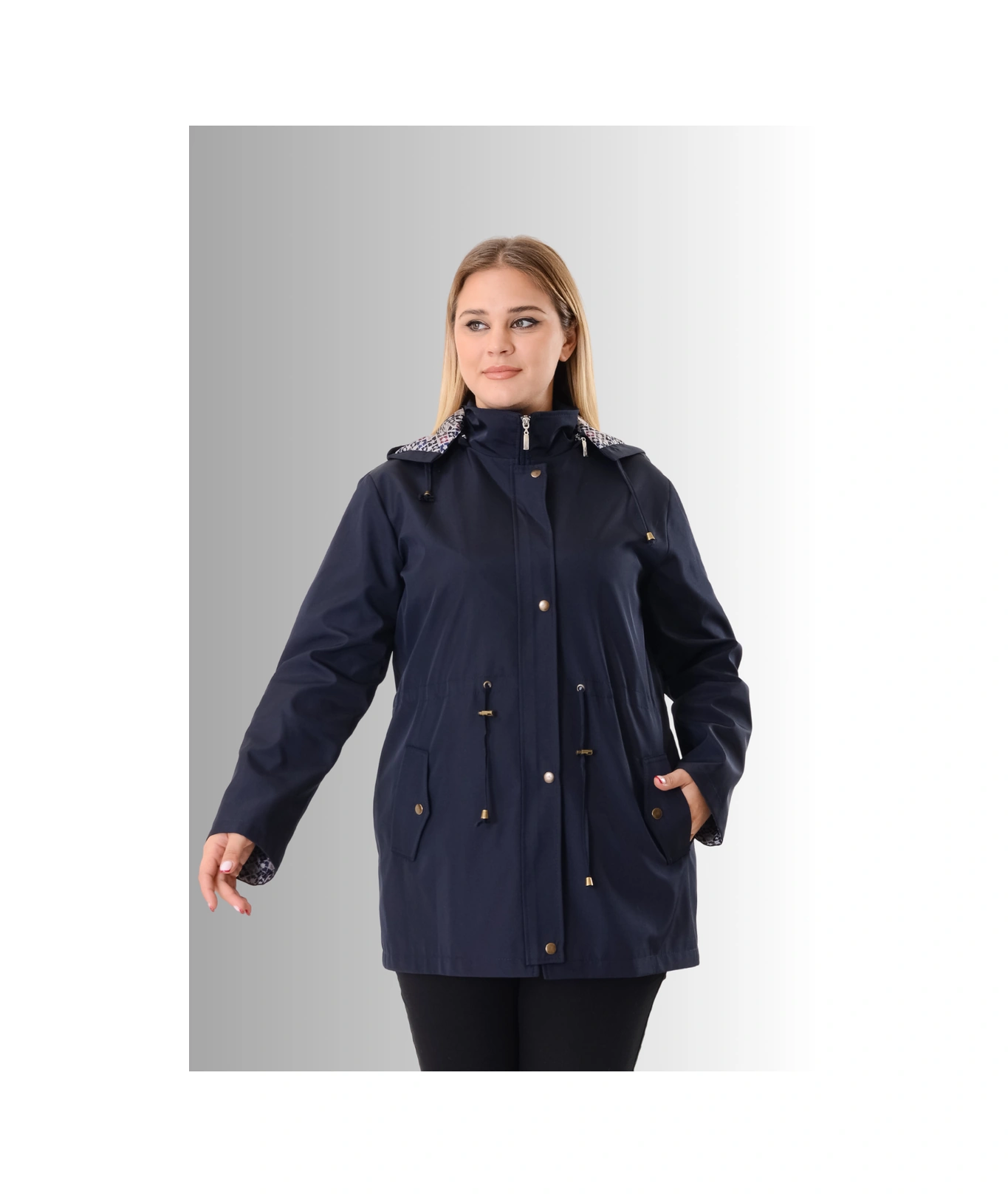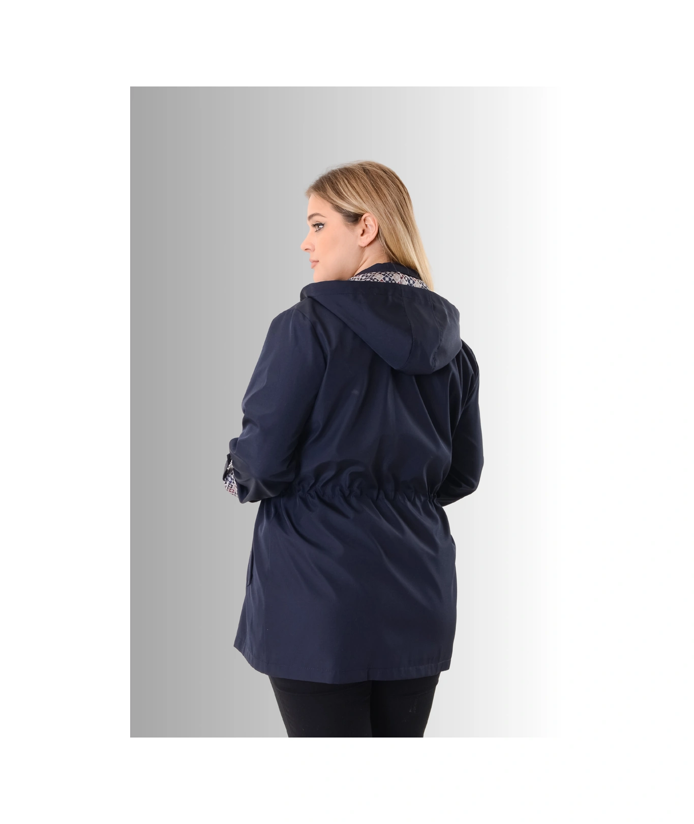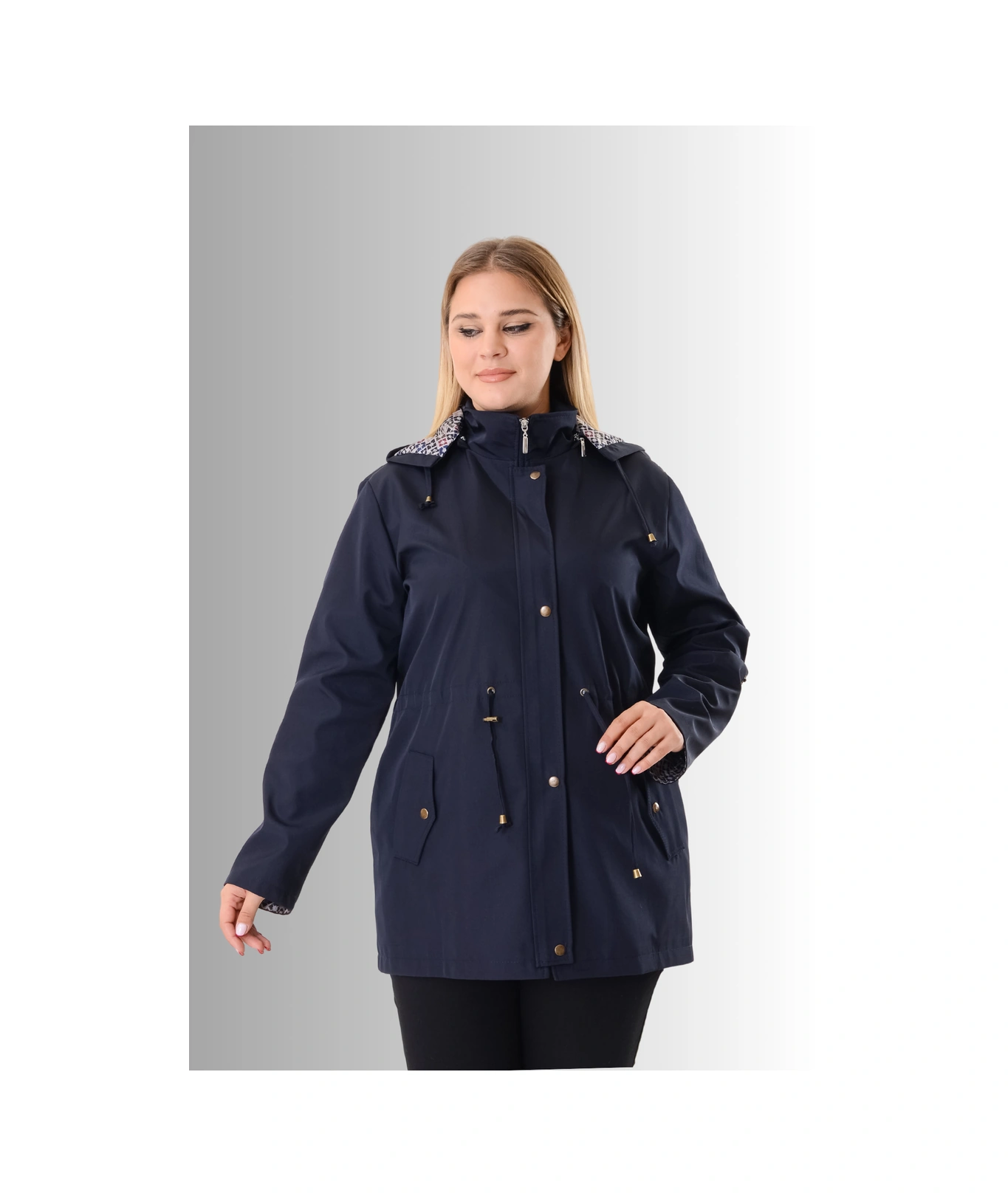 Büyük Beden Kapüşonlu Lacivert Renkli Bonding Ceket Lacivert