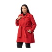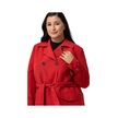 Büyük Beden Kruvaze Kolu Bant Detaylı Cepli Kuşaklı Astarlı Kırmızı Trençkot Kırmızı