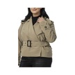 Büyük Beden Mono Yaka Kemerli Astarlı Kısa Çağla Yeşili Trençkot Çağla Yeşili