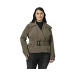 Büyük Beden Mono Yaka Kemerli Astarlı Kısa Haki Trençkot Haki