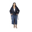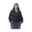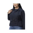 Büyük Beden Mono Yaka Kemerli Astarlı Kısa Lacivert Trençkot Lacivert